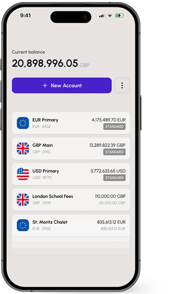 With the HY10 app, you can easily manage all your main and supplementary accounts in one place. Open and hold accounts in a range of major currencies, monitor spending, manage assets, set spending limits, and apply account controls, all designed to help you stay in control of your finances.